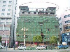 正在楼顶加盖的违建(划圈处)。 王国柱 摄 借口出新,老楼拔高了2层 姜堰一5层楼上加盖违建,当地规划部门多次制止无果 昨天,姜堰市民张先生反映,该市城区中心惊现一处史上最