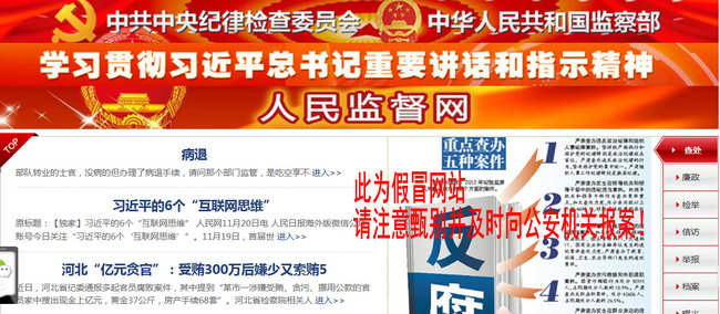 日前,接到网民民投诉,有人制作假冒的人民监督网,冒充人民监督网工作人员,骗取钱财。