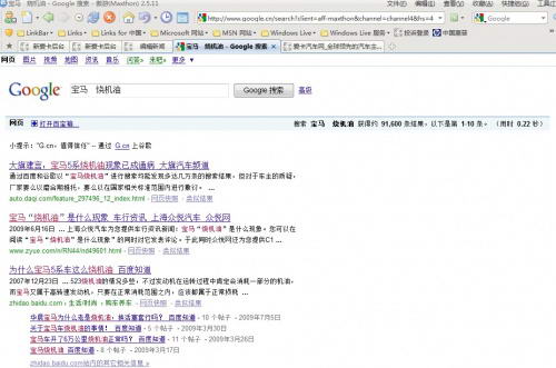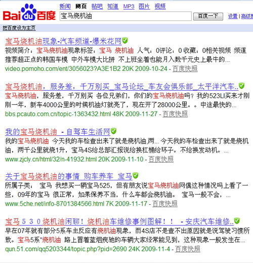 在Google可以搜索到约9万1千条关于宝马机油的链接