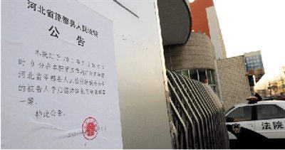 1月25日,在河北省望都县人民法院门口张贴的公告。