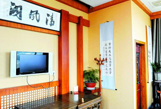 “清风阁”的墙上挂着廉政字画。 本报记者 董旭明 摄
