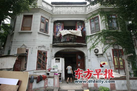 “大连路惠民路路口四幢有着近百年历史的西班牙式花园洋房,因周边拆迁,楼房窗户、栏杆等或被拆或被毁坏,内部也是‘伤痕累累’。很少有人知道,这洋房正是近百年前‘上海精武体育总会’会址。”