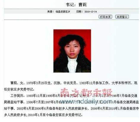 山西临县政府网站上的简历显示,曹莉15岁即到煤矿工作。网页截图